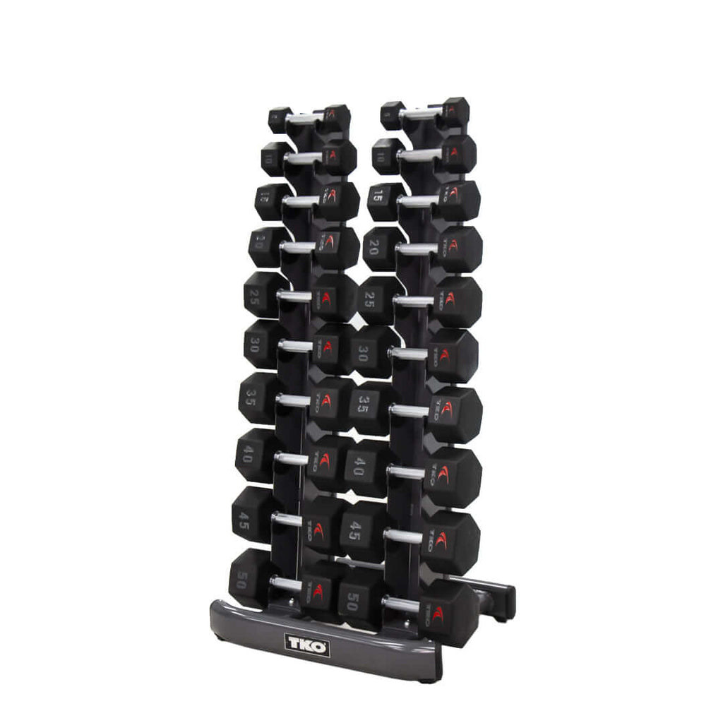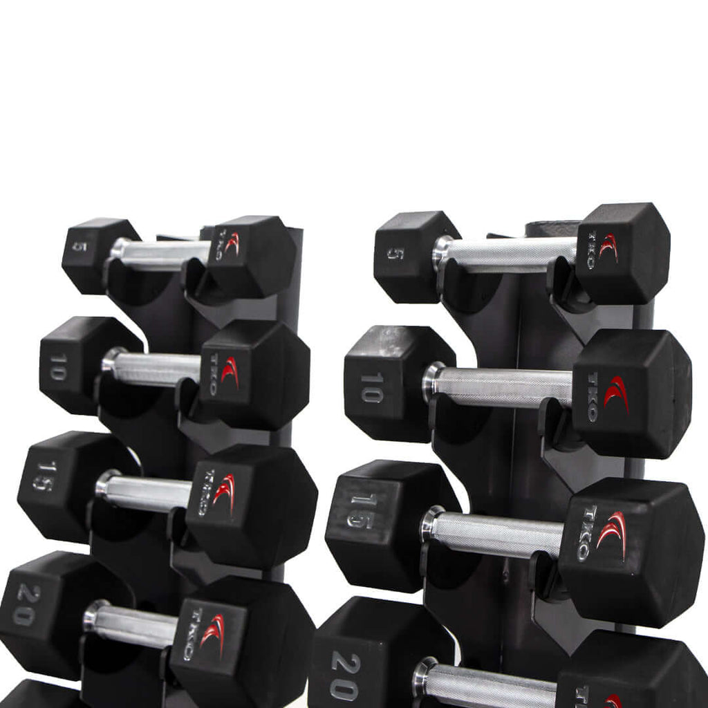 • TKO Rubber Straight Barbell Set w/ 5-Bar Rack (20-60 lb)