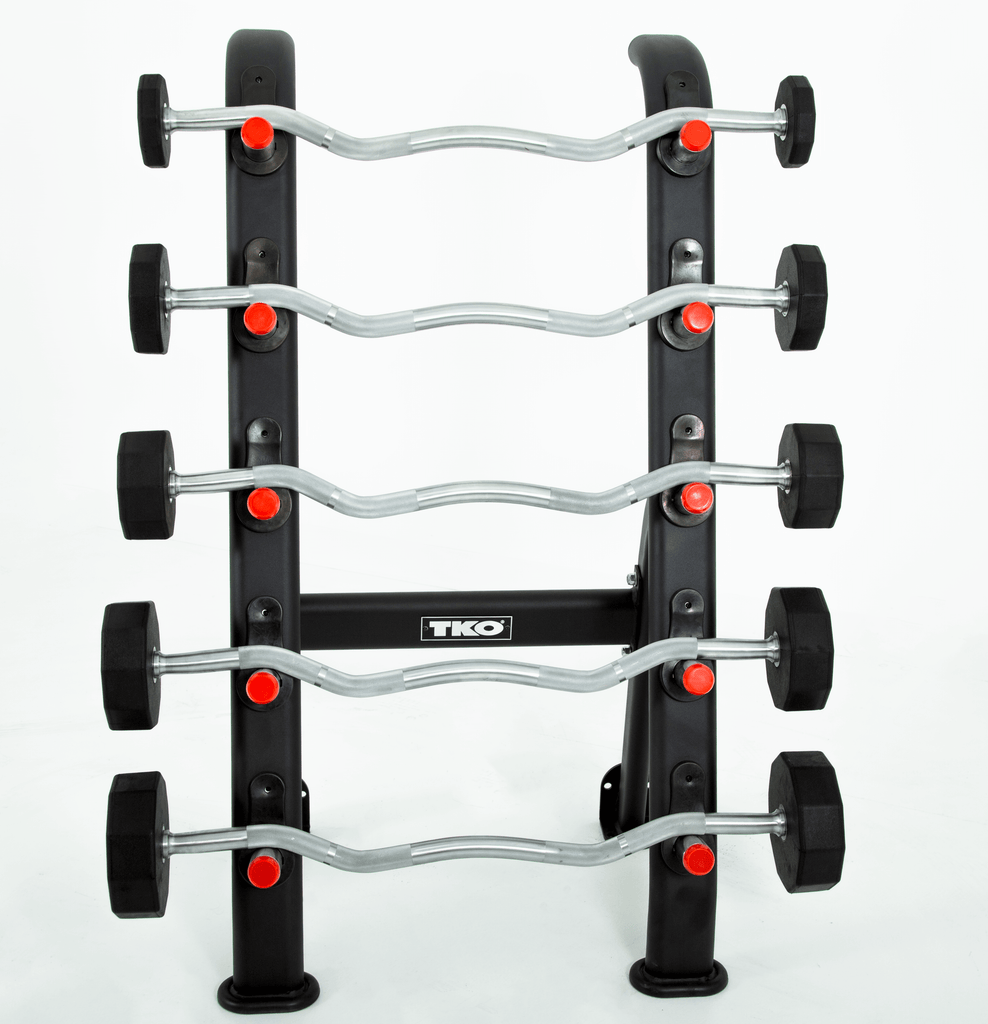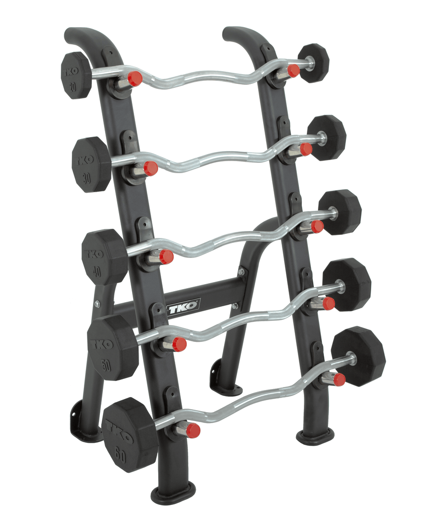 • TKO Rubber Curl Barbell Set w/ 5-Bar Rack (20-60 lb)