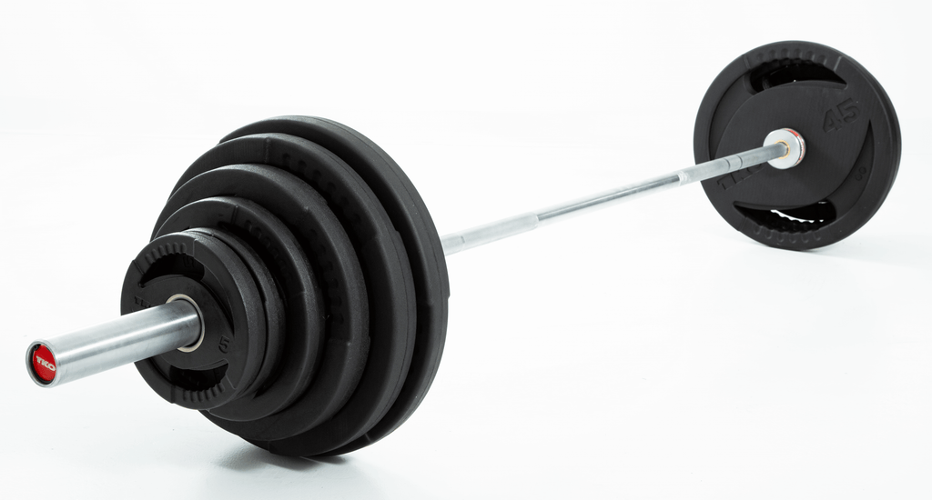 TKO Olympic Rubber Dual Grip Plate Set (300 lbs) w/ Collars & Assorted Bar Options